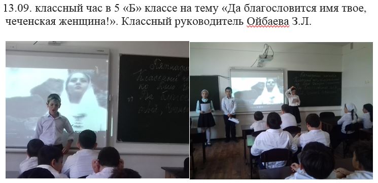 13.09. классный час в 5 «Б» классе на тему «Да благословится имя твое, чеченская женщина!». Классны