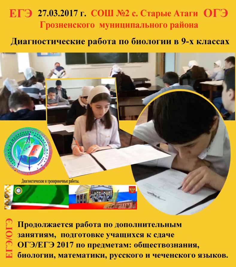 Продолжается работа по дополнительным занятиям, подготовке учащихся к сдаче ОГЭ/ЕГЭ 2017 по предметам: обществознания, биологии, математики, русского и чеченского языков.