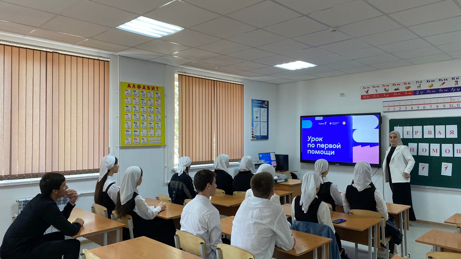 31.10.2023Сегодня, 31 октября, в школе прошёл урок по первой помощи, в рамках Всероссийского проекта «Первая помощь», который реализует Движение Первых. В мероприятии приняли участие учащиеся 9А, 9Б.