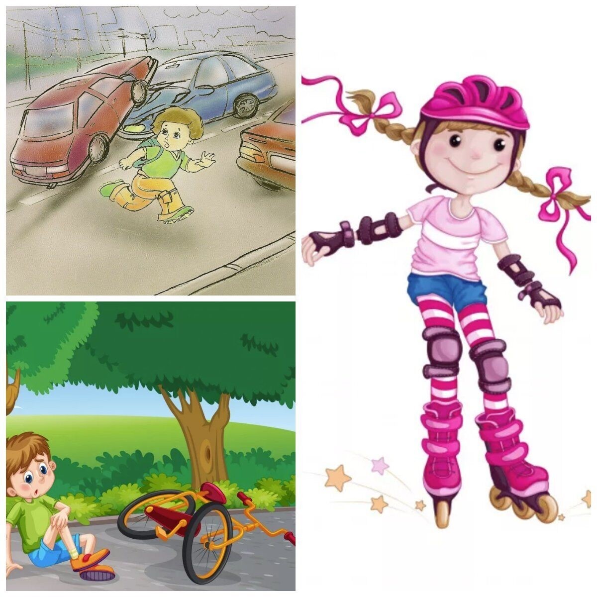 Научите правильно падать – вперед на колени, а затем на руки. Кататься нужно подальше от автомобильных дорог. Научите детей избегать высоких скоростей, следить за рельефом дороги, быть внимательным.